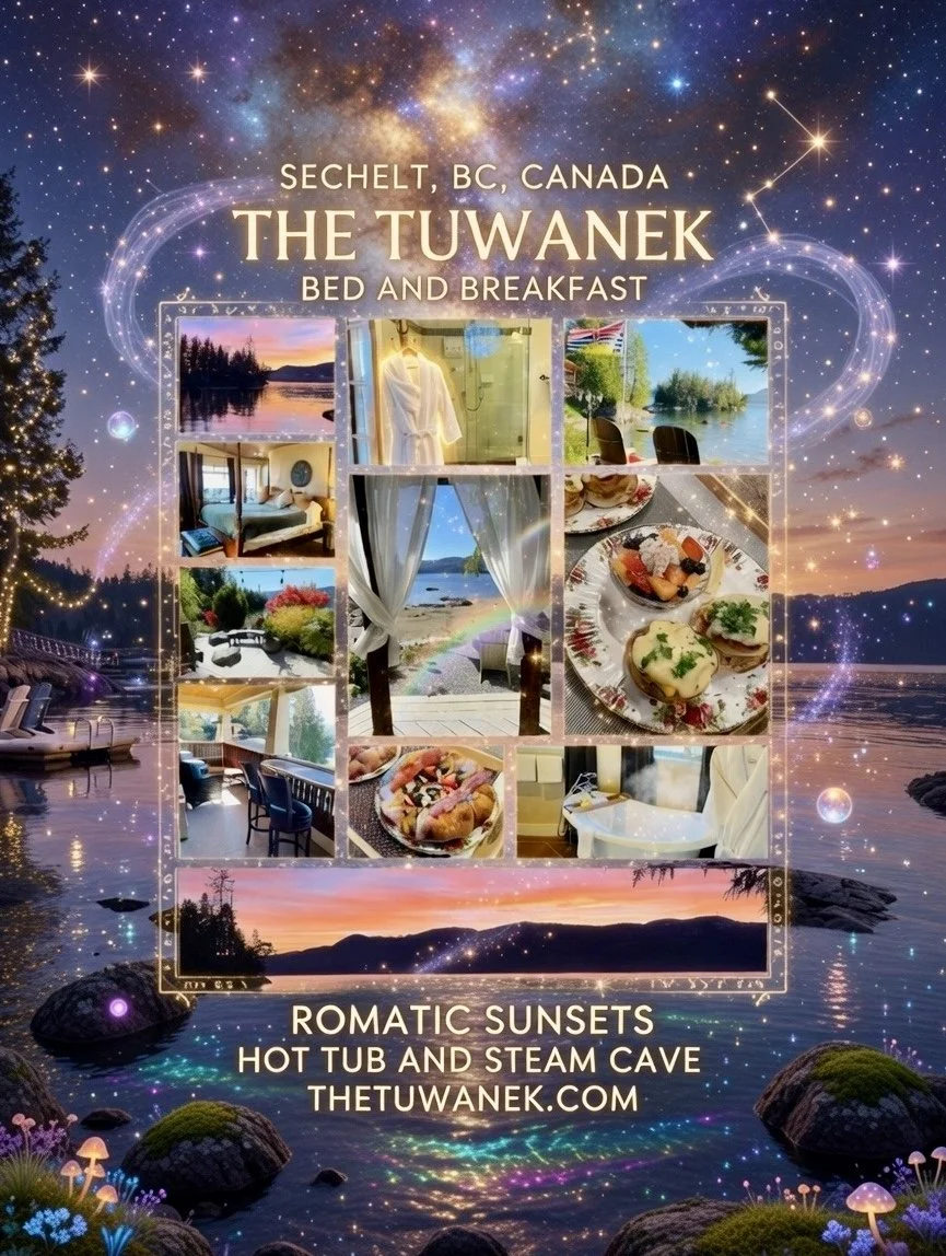 THE TUWANEK BED AND BREAKFAST IS ON THE SUNSHINE COAST JUST TEN MINUTES FROM SECHELT. PERFECT FOR HONEYMOONS AND ANNIVERSARIES.